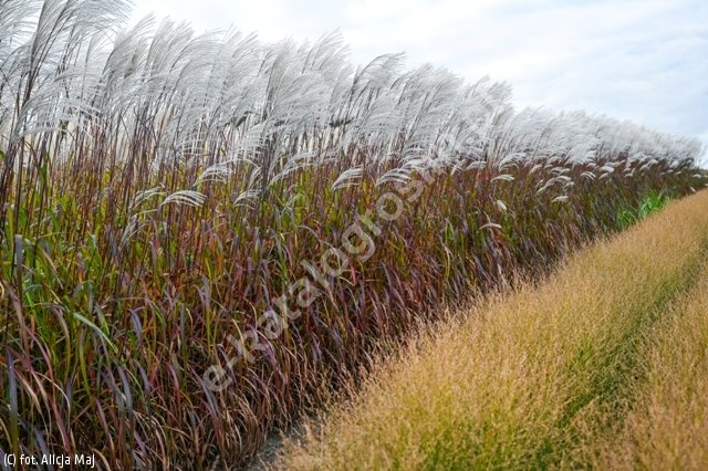 Bardzo wysoka trawa bylinowa zachwycająca kaskadowym pokrojem oraz obfitym kwitnieniem. Dorastać może nawet do 2,7 m wysokości. Tworzy atrakcyjne kępy długich, szerokich, łukowato przewieszających się liści. Liście są ciemnozielone, jesienią przyciągają wzrok czerwonofioletowym przebarwieniem. We wrześniu ukazują się zwiewne kwiatostany, które najpierw są delikatnie zaróżowione, a później srebrno-białe. Okazałe wiechy pięknie współgrają z malowniczo układającymi się liśćmi. Wiosną należy nisko przyciąć zaschnięte ubiegłoroczne liście. Trawa mrozoodporna oraz tolerancyjna w stosunku do pH podłoża. Najlepiej rośnie na słonecznych stanowiskach, na glebach umiarkowanie wilgotnych. Może być wykorzystywana w ogrodach przydomowych, miejskich, w kompozycjach naturalistycznych. Dobrze prezentuje się jako soliter lub sadzona w grupach.