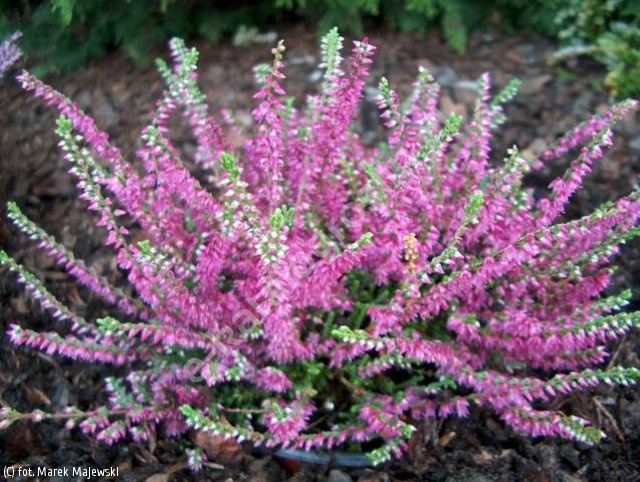 Zimozielona krzewinka o liściach ciemnozielonych z lekkim nalotem szarości i ciemnych, purpurowofioletowych kwiatach. Kwitnie późnym latem - sierpień, wrzesień. Osiąga niewielkie rozmiary wysokość 20 cm, szerokość 40 cm. Chętnie sadzona na skalniakach i w niewielkich ogrodach przydomowych. Jedna z ciekawszych kolorystycznie odmian. Wymaga stanowisk słonecznych, gleby kwaśnej (pH 4,5), próchnicznej lecz przepuszczalnej. Nie toleruje zalewania. Do podlewania najlepiej stosować linie kroplujące, gdyż nadmiar wilgoci może powodować choroby. Każdej wiosny należy przycinać pędy tuż pod kwiatostanami.