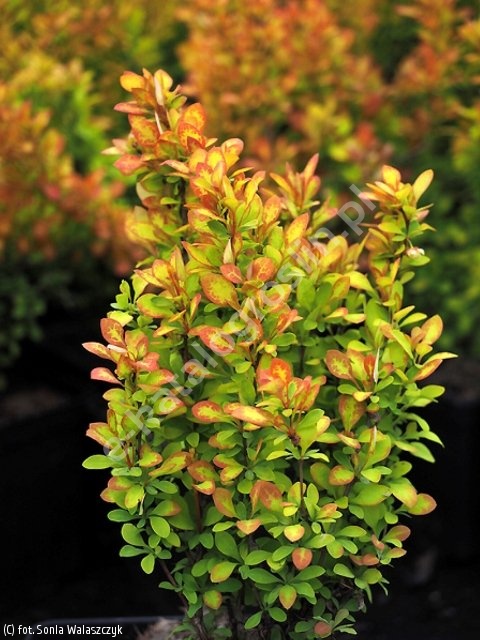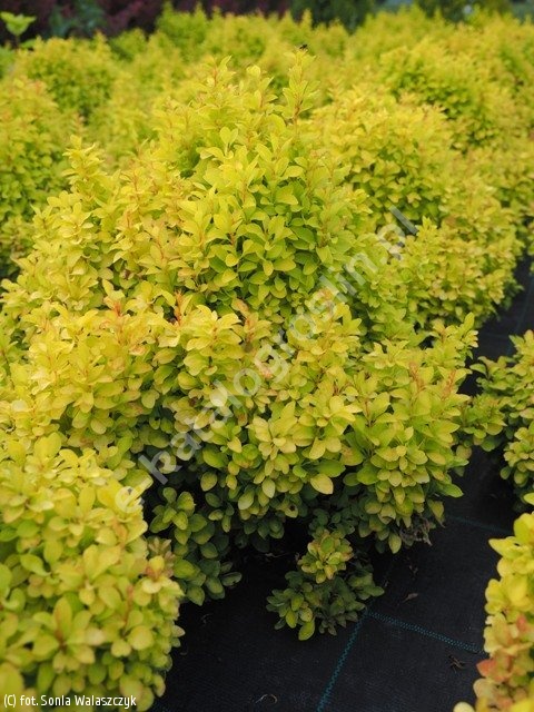 Polska odmiana. Krzew o bardzo zwartej, kolumnowej formie, dorastający do około 0,5 m wysokości i 0,3 m szerokości. Wzrost wolny. Liście są małej i średniej wielkości o barwie głęboko żółtej. Najmłodsze liście i pędy są natomiast bardziej pomarańczowe. Kwiaty żółte, zebrane w drobne kwiatostany. Owoce czerwone, dojrzewają latem. Odmiana ta dobrze znosi cięcie wczesną wiosną, sprzyja to utrzymaniu zwartego pokroju i lepszego wybarwienia, jednak nie jest konieczne co roku. Odmiana odporna na mróz, polecana do sadzenia w ogrodach przydomowych i osiedlowych, w formie żywopłotów oraz w kompozycjach z innymi krzewami i bylinami.