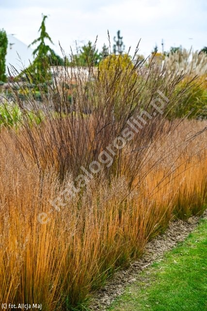 Rodzima trawa ozdobna dorastająca w czasie kwitnienia do 1,2-1,5 m wysokości. Wyróżnia się niesamowicie ciemnymi, niemal czarnymi źdźbłami, na których osadzone są równie ciemne kwiatostany. Kwitnienie rozpoczyna w lipcu. Łukowato wygięte źdźbła wybarwiają się już w drugiej połowie lata. Zachowuje walory ozdobne aż do zimy. Odporna na mróz i wyleganie. Preferuje stanowiska słoneczne i lekko ocienione. Tolerancyjna co do gleby, dobrze rośnie na glebach umiarkowanie wilgotnych po wilgotne, ale znosi także okresowe susze. Polecana do nasadzeń naturalistycznych. Przepięknie komponuje się z innymi trawami i bylinami. Może być sadzona pojedynczo lub w niewielkich grupach, podsadzona niższymi roślinami. Można wykorzystać ją w nasadzeniach pojemnikowych.