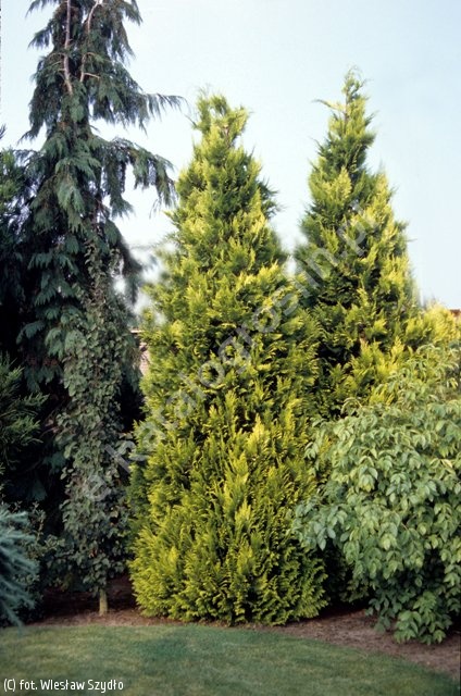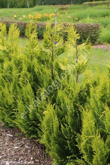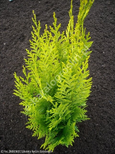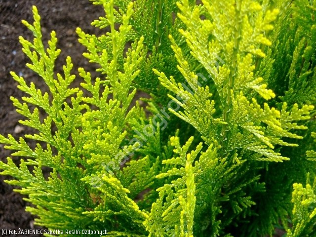 Średnio szybko rosnące drzewo o stożkowatym pokroju i przewieszonym wierzchołku, osiągające w wieku 10 lat około 2,5 m wysokości. Cechą charakterystyczną odmiany jest złociste wybarwienie łusek pokrywających drobne, delikatne gałązki, które nie ulega odbarwieniu w okresie zimy, oraz dobra mrozoodporność. Pędy są ułożone stosunkowo luźno, gałązki są szerokie, z lekko opadającymi ku ziemi końcówkami. Drzewo preferuje gleby żyzne, stale umiarkowanie wilgotne. Ma znacznie wyższe wymagania wilgotnościowe w porównaniu do żywotników czy jałowców. Najlepiej rośnie na stanowiskach słonecznych, zacisznych i osłoniętych. Odmiana polecana do tworzenia nieformowanych żywopłotów (rozstawa co 80-100 cm), a także do sadzenia pojedynczo lub w kompozycjach z innymi roślinami iglastymi.