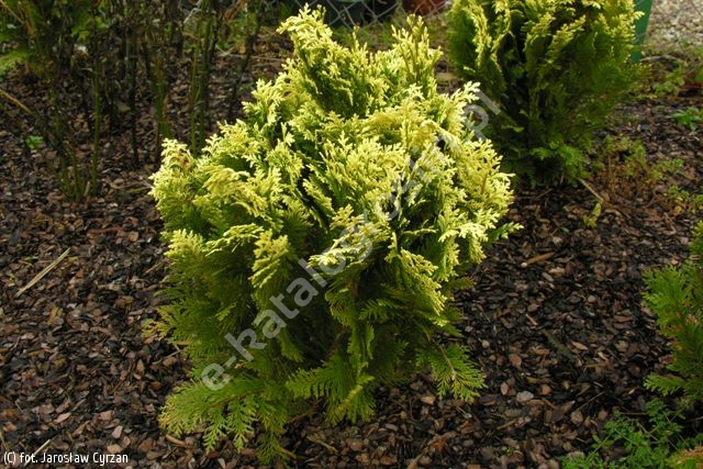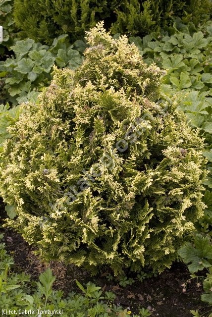 Gęsta, początkowo kulista, po wielu latach przybierająca formę szerokiego stożka, odmiana o bardzo wolnym tempie wzrostu i atrakcyjnej barwie gałązek. Trzydziestoletnie okazy uzyskują zwykle nie więcej niż 1 m wysokości. Wszystkie pędy wzniesione, ukryte wewnątrz krzewów. Gałązki krótkie, wachlarzykowate, gęsto rozgałęzione, ściśle ułożone obok siebie w różnych kierunkach, szarawozielone. Końcówki gałązek oraz najmłodsze przyrosty kremowożółte lub białosrebrzyste. W okresie intensywnego wzrostu wiosną i latem całe krzewy są wyraziście nakrapiane. Wrażliwe na słońce kremowe fragmenty gałązek bardzo często ulegają przypaleniu w trakcie upalnej, bezchmurnej pogody. Odmiana jest polecana do sadzenia na stanowiskach w samo południe lekko ocienionych, na glebach żyznych, wilgotnych i przepuszczalnych, w miejscach zacisznych, osłoniętych od wiatru, głównie w zachodniej części kraju. Doskonale nadaje się do sadzenia w ogrodach skalnych, na wrzosowiskach oraz w kompozycjach barwnych z roślinami iglastymi.