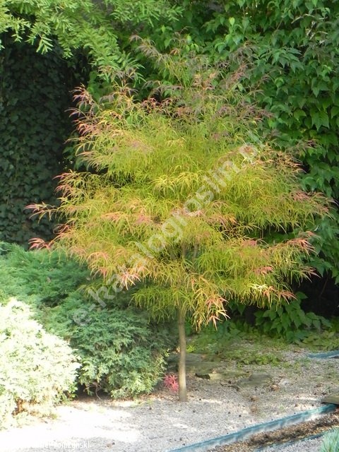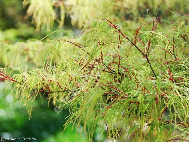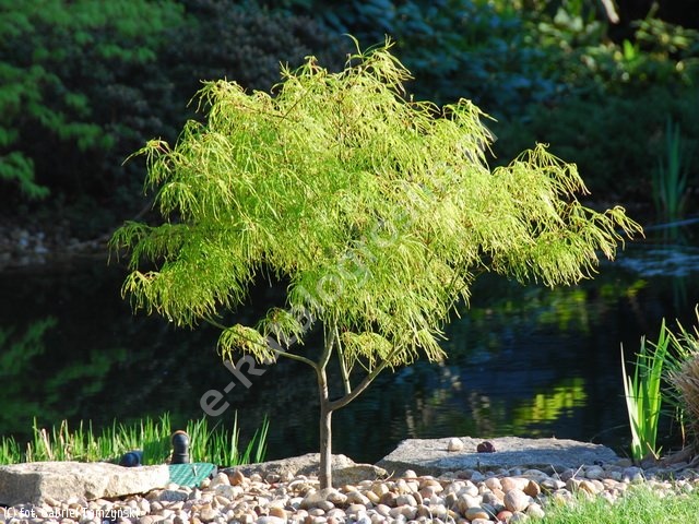 Wolnorosnący krzew o wzniesionym pokroju. Po 15 latach uprawy osiąga do 1 m wysokości, a docelowo do 2,5 m. Liście jasnozielone, 7-klapowe, o bardzo wąskich, lancetowatych klapach, delikatnie zwisających. Wprawiane w ruch najdrobniejszym podmuchem powietrza poruszają się jak delikatne zielone frędzelki. Ładnie przebarwiają się jesienią na kolor żółty. Wymaga żyznej, przepuszczalnej, równomiernie wilgotnej gleby i osłoniętych stanowisk, słonecznych lub lekko ocienionych. Odmiana polecana do ogrodów przydomowych i ogrodów japońskich w zestawieniach z innymi klonami palmowymi, iglakami lub krzewami liściastymi. Młode egzemplarze na zimę należy osłaniać chochołami ze słomy, juty lub agrowłókniny.