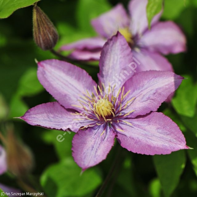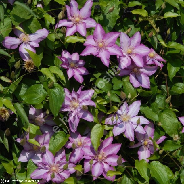 Polska odmiana o kwiatach średnicy 13-17cm, z 6-7 ostro zakończonymi, różowymi działkami, ciemniejszymi na brzegach, a jaśniejszymi w środku. Pręciki ze złocistymi pylnikami na purpuroworóżowych nitkach pięknie kontrasują z okwiatem. Kwitnie maj - czerwiec na pędach zeszłorocznych i ponownie lipiec – wrzesień na pędach tegorocznych. Podpór czepia się ogonkami liściowymi. Szczególnie przydatna do uprawy przy altanach, ogrodzeniach, kratach, tyczkach i innych podporach ogrodowych. Może wspinać się po naturalnych podporach.