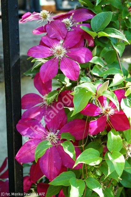 Obficie kwitnąca, polska odmiana o jaskrawo czerwonych, aksamitnych kwiatach śr. 15 cm, VI-VIII. Osiąga 2-3 m wys. Ciąć silnie. Sadzić przy ogrodzeniach, ścianach, altanach i innych podporach lub dużych krzewach, najlepiej na jasnym tle. Świetna do pojemników.
