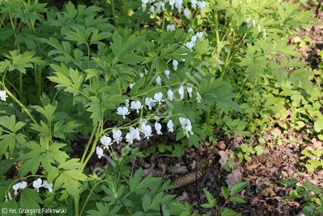Okazała bylina dorastająca do 0,8 m wysokości tworząca wiosną silne, grube łodygi, duże, jasnozielone, pierzasto złożone liście oraz atrakcyjne, czysto białe, sercowate kwiaty zebrane w długie, łukowato wygięte, groniaste kwiatostany. Rośliny zakwitają w maju, a po kwitnieniu żółkną i stopniowo przechodzą w spoczynek. Są rzadko atakowane przez choroby i szkodniki a ich mrozoodporność jest dobra. Bylina ta najlepiej rośnie na glebach żyznych, stale umiarkowanie wilgotnych, na stanowiskach półcienistych. Rośliny charakteryzują się dużą trwałością i na jednym miejscu mogą rosnąć nawet kilkadziesiąt lat! Odmiana ‘Alba’ będzie pięknym, jasnym akcentem każdej cienistej rabaty. Ze względu na szybkie wchodzenie roślin w spoczynek serduszka okazałe należy sadzić w sąsiedztwie bylin, które rozrastając się zasłonią puste miejsca po zanikających latem serduszkach, np. funkii. Odmiana polecana do sadzenia pojedynczo lub po 2-3 rośliny w grupie. Liczba roślin na 1 m2 - 5.