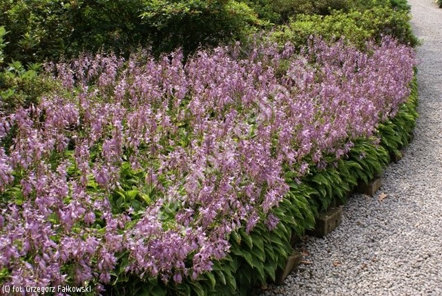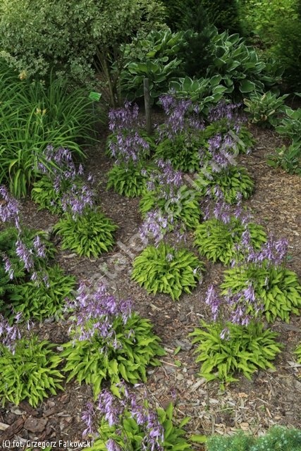 Niska odmiana funkii o efektownych liściach. Liście podłużne, wąskie, zielone, z pięknym, żółtym obrzeżeniem. Kwiaty niewielkie, ciemnofioletowe, VII-VIII. Późno rozpoczyna wegetację. Wymaga bardzo żyznej, próchnicznej, stale wilgotnej gleby. Polecana do tworzenia rabat, do okrywania większych powierzchni w cieniu, w grupach po 2-3 rośliny lub w dużych grupach po 10-20 razem. Doskonała do ogrodu skalnego. Liczba roślin na 1 m² - 11.