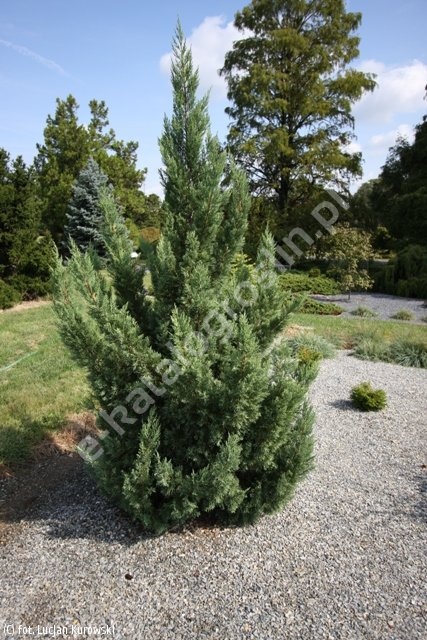 Stosunkowo nowa odmiana z 1973 roku, selekcji amerykańskiej szkółki Monrovia. Krzew o kolumnowym lub stożkowatym pokroju i dosyć silnym wzroście. Po 10 latach od posadzenia dorasta do 2 m wysokości. Na ubogich glebach wzrost znacznie słabszy. Ulistnienie początkowo igiełkowate, kłujące; u starszych okazów również łuskowate, o barwie stalowoniebieskiej. W uprawie roślina mało wymagająca, polecana na słabsze gleby. Stanowiska dobrze nasłonecznione, gdyż tylko wtedy rośliny mają ładny, stalowy odcień. Krzewy nadają się do sadzenia w ogrodach przydomowych, na wrzosowiskach, rabatach, w kolekcjach roślin iglastych oraz do tworzenia ciekawych zestawień kolorystyczno-pokrojowych. Polecane również na szpalery.