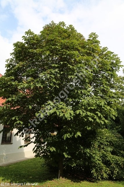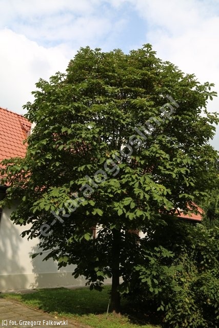 Wolnorosnąca odmiana o gęstej, kulistej, później szerokostożkowatej koronie, dorastającej do 3-4 m średnicy. Najczęściej oferowana w formie piennej. Liście pięciopalczaste, ciemnozielone, wcześnie rozwijające się na wiosnę, jesienią żółtobrązowe. Kwiaty białe, zebrane w okazałe kwiatostany, V. Stanowiska słoneczne i cieniste. Małe wymagania glebowe, duża odporność na warunki miejskie. Nadaje się do obsadzania ulic.