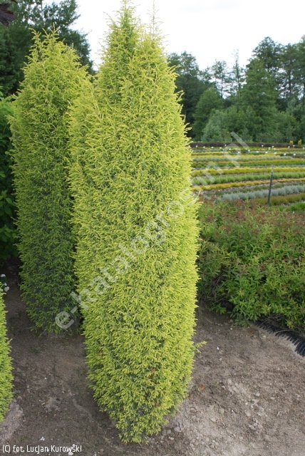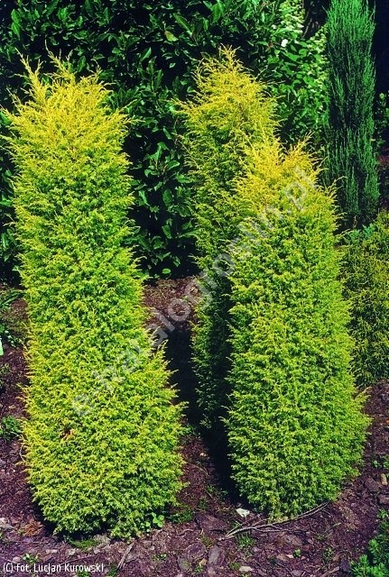 Wolno rosnąca, początkowo jajowata, później kolumnowa odmiana jałowca o intensywnie żółtym, złocistym ulistnieniu. Po 10 latach uprawy dorasta do ok 1,5 m wysokość i 0,4-0,5 m szerokości. Regularnym pokrojem przypomina odmianę ‘Hibernica’. Forma bezprzewodnikowa, wielopędowa, na szczycie zaokrąglona. Pędy ułożone wertykalnie, dość sztywne, odporne na okiść śniegową. Gałązki liczne, wyprostowane, na końcach delikatnie odchylone na zewnątrz, gęsto ułożone, tworzą zwartą powierzchnię. Igły krótkie, 5-7 mm długości, miękkie, słabo kłujące, osadzone po 3 wokół pędów. Igły przez cały rok złociste, w czasie sezonu wegetacyjnego intensywnie żółte, zimą żółtobrązowe. Igły wewnątrz krzewu oraz od strony północnej pozostają lekko zielonkawe. Odmiana notowana w sprzedaży od lat osiemdziesiatych XX wieku. Roślina łatwa w uprawie, o bardzo skromnych wymaganiach glebowych. Doskonale rośnie na stanowiskach słonecznych, na glebach ubogich w składniki pokarmowe, suchych, kamienistych, a nawet jałowych. Mrozoodporność dobra, ale w najchłodniejszych rejonach kraju może zimą przemarzać, zwłaszcza od strony południowej. Na zimę zaleca się osłanianie roślin cieniówką lub agrowłókniną. Krzew polecany do uprawy w ogrodach przydomowych pojedynczo lub w grupach, na wrzosowiskach, na cmentarzach, na rabatach w zestawieniu z innymi roślinami iglastymi. Nadaje się do sadzenia w formie szpaleru. W kompozycji daje wyraźny akcent kolorystyczny.