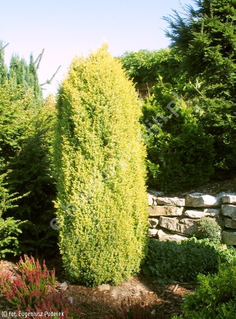 Kolumnowa, wąska odmiana o dosyć wolnym tempie wzrostu, osiągająca w wieku 10 lat około 1,5 m wysokości. Pędy i gałązki wyprostowane, wzniesione, ułożone równolegle obok siebie, tworzące zwarte kolumny zaokrąglone na szczycie. Igły złocistożółte wiosną, później żółtozielone. Odmiana łatwa w uprawie, mało wymagająca. Dobrze rośnie na miejscach słonecznych, glebach lekkich. Znosi suszę i jest wystarczająco mrozoodporna, aby mogła być uprawiana na terenie prawie całego kraju. Jedynie na Suwalszczyźnie powinna być sadzona w miejscach zacisznych, osłoniętych od mroźnego wiatru w okresie zimy. Doskonale nadaje się do sadzenia w małych ogrodach przydomowych, szczególnie na wrzosowiskach i skalniakach. Polecana do tworzenia kompozycji pokrojowych i barwnych z roślinami iglastymi. Nadaje się na nieformowane żywopłoty.