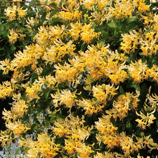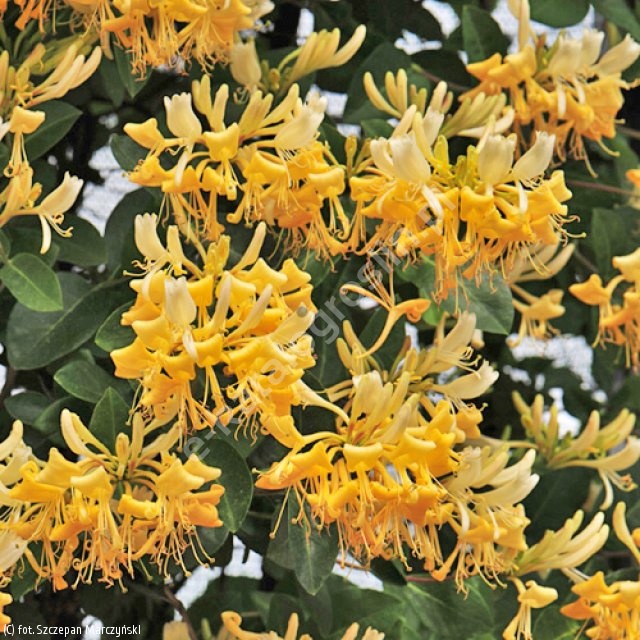 Wyjątkowo długo i obficie kwitnąca odmiana o intensywnie, przyjemnie pachnących kwiatach. Osiąga 4 m wys. (1-2 m rocznie). Liście Kwiaty rurkowate, beżowożółte, V-IX. Owoce czerwone, VI-X. Zadawala się przeciętnymi glebami, jeśli nie są zbyt suche lub kwaśne. Polecana do stosowania przy ogrodzeniach i różnych podporach.