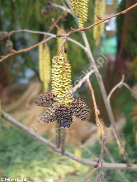 Mieszaniec dwóch mniej znanych w uprawie gatunków: olszy japońskiej (A. japonica) i olszy kaukaskiej (A. subcordata). Drzewo średnich rozmiarów osiągające około 10-12 m wysokości. Kora szarobrązowa, podłużnie spękana. Liście lancetowate do eliptycznych, duże nawet, do 15 cm długości. Młode, rozwijające się liście purpurowo zabarwione, później zielone. W uprawie gatunek rzadko spotykany, polecany do ogrodów naturalistycznych i kolekcyjnych, parków, zieleńców.