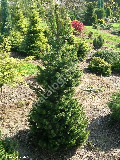 Wolno rosnąca odmiana świerka o stożkowatym pokroju. Po 10 latach osiąga ok. 1 m wysokości i 0,5 m szerokości. Pędy gęste, z licznymi rozgałęzieniami. Igły lśniące, żywozielone, ułożone promieniście. Młode przyrosty jaśniejsze. Wymagania glebowe i wilgotnościowe przeciętne. Najlepiej rośnie na glebach gliniasto-piaszczystych, próchnicznych, o umiarkowanej wilgotności, lekko kwaśnych. Wrażliwa na suche powietrze i zanieczyszczenia przemysłowe. Wymaga stanowisk nasłonecznionych lub lekko zacienionych. Doskonała odmiana dla ogrodów skalnych i alpinariów. Dobrze komponuje się w zestawieniach z innymi formami pokrojowymi świerka pospolitego.