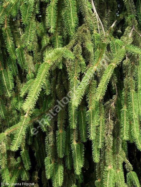 | pochodzenie | pierwsza publikacja: Sparrmann ex J.Alströmer jako Picea abies f. viminalis 1777 Svensk Vet.Aksd.Handl.38:310; odkrywca, hodowca (selekcjoner): Jonas Alströmer (1685–1761) w 1741 las koło Sztokcholmu, Szwecja |