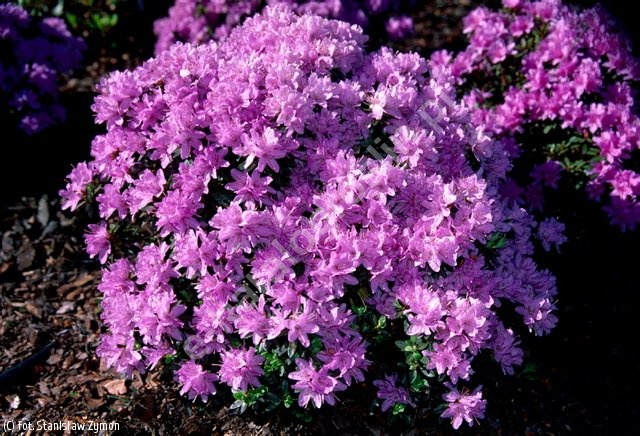 Zimozielony, karłowy krzew o kulistym, lekko spłaszczonym pokroju. Po 10 latach dorasta do około 0,4 m wysokości i 0,6 m szerokości. Liście ciemnozielone, pokryte licznymi, łuskowatymi gruczołkami, aromatyczne. Kwiaty jasnofioletowe, drobne, około 2,5 cm średnicy, ale bardzo liczne. Kwitnie obficie pod koniec kwietnia i w pierwszej dekadzie maja. Wymaga stanowisk słonecznych lub półcienistych oraz gleb kwaśnych, umiarkowanie wilgotnych i próchnicznych. Odmiana polecana jest na wrzosowiska i do ogrodów skalnych. Bardzo ładnie wygląda posadzona w sąsiedztwie wcześnie kwitnących wrzośców i innych karłowych krzewów wrzosowatych. Krzewy tej odmiany odznaczają się dobrą mrozoodpornością, jednak czasem spóźnione, wiosenne przymrozki mogą uszkadzać część kwiatów.