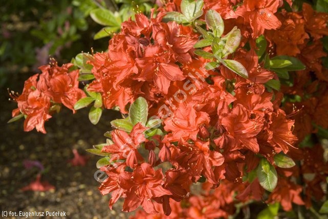 Zwarty, rozłożysty krzew. Po 10 latach dorasta do około 1m wysokości i 1,2 m szerokości. Liście sezonowe, od 5 do 7 cm długości, zielone. Młode przyrosty z brązowym odcieniem. Kwiaty intensywnie czerwone przez cały okres, nie blednące na słońcu, z wyraźnymi białymi pręcikami, z górnym płatkiem korony nieco jaśniejszym, duże, od 6 do 6,5 cm średnicy, zebrane po kilkanaście sztuk w szerokie, kuliste kwiatostany. Kwitnie obficie i corocznie pod koniec maja. Wymaga stanowisk słonecznych lub półcienistych oraz gleb kwaśnych, umiarkowanie wilgotnych i próchnicznych. Mrozoodporność dobra. Odmiana polecana do ogrodów przydomowych. Ładnie prezentuje się na rabatach razem z różanecznikami i karłowymi azaliami japońskimi.