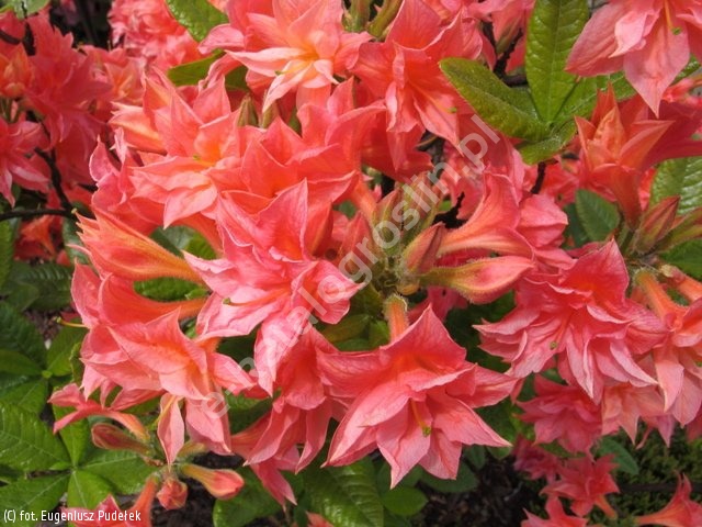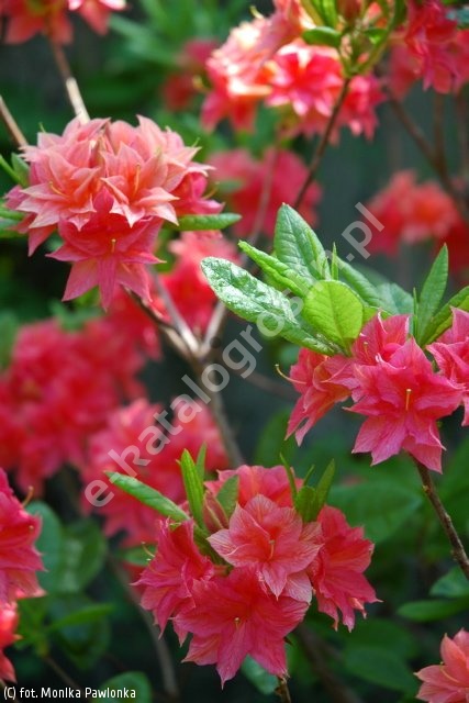 Wyprostowany, szeroki krzew dość silnie rosnący, o bardzo ładnych i charakterystycznych kwiatach. Po 10 latach dorasta do 1,5 m wysokości i 2 m szerokości. Liście sezonowe, jasnozielone, błyszczące. Kwiaty pełne, łososioworóżowe, dość drobne, około 4 cm średnicy, ale bardzo liczne, zebrane po kilkanaście sztuk w efektowne i bardzo dekoracyjne, idealnie kuliste kwiatostany. Kwitnie bardzo obficie w drugiej połowie maja. Wymaga stanowisk słonecznych lub lekko zacienionych oraz gleb kwaśnych, stale wilgotnych i próchnicznych. Niezwykle piękna odmiana, całkowicie mrozoodporna, polecana do nasadzeń pojedynczo lub w grupach, w ogrodach przydomowych i w parkach.