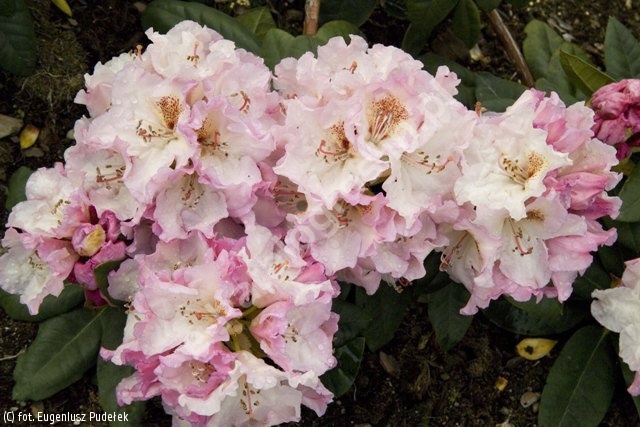 Zimozielony, silnie rosnący krzew o szerokim i półkulistym pokroju. Po 10 latach dorasta do 1,6 m wysokości i prawie takiej samej szerokości. Liście ciemnozielone, jajowate, od 12 do 17 cm długości, z wierzchu błyszczące. Kwiaty lejkowate, w środku początkowo różowe, potem kremowe, z wyraźną, buraczkową plamką na górnym płatku, na brzegach lilioworóżowe i delikatnie pofalowane, na zewnątrz jasnopurpuroworóżowe, o średnicy 9 cm, zebrane po 11-12 sztuk w gęste, kuliste kwiatostany. Kwitnie obficie w pierwszej połowie maja. Wymaga stanowisk półcienistych lub zacienionych oraz gleb kwaśnych, umiarkowanie wilgotnych i próchnicznych. Odmiana nie jest u nas zupełnie mrozoodporna, dlatego wymaga stanowisk osłoniętych i zacisznych oraz dobrego, zimowego okrycia. Interesująca odmiana, polecana do nasadzeń w cieplejszych rejonach kraju, w barwnych kompozycjach ogrodowych, razem z innymi różanecznikami i wielkokwiatowymi azaliami.