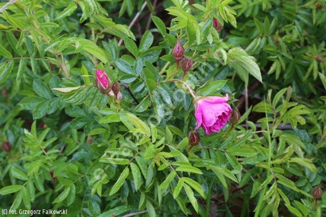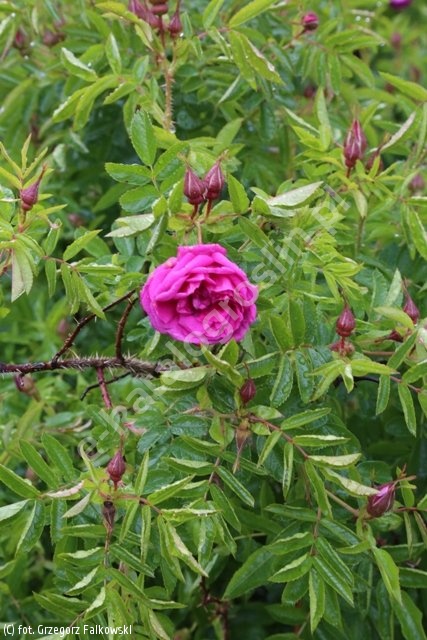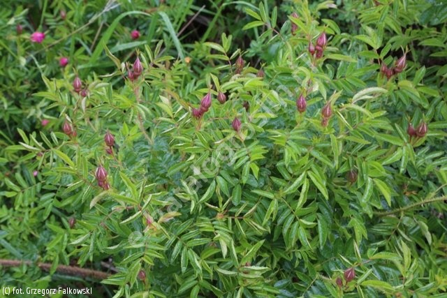 Kwiaty różowe, półpełne, średniej wielkości, 5-6 cm, o lekkim zapachu. Liście średniej wielkości, jasnozielone, matowe. Pędy wzniesione, pokryte drobnymi kolcami. Wzrost silny, wys. 80-120 cm. Daje liczne odrosty korzeniowe i rozłogi umacniające grunt. Cenna odmiana, sprawdzająca się w warunkach miejskich, zdrowa i całkowicie odporna na mróz. Gęstość sadzenia: 3-4szt/m2.
