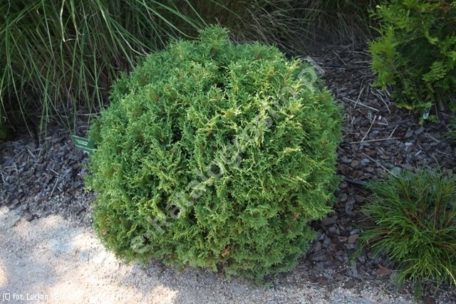 Niezwykle wolno rosnąca, karłowa odmiana żywotnika zachodniego osiągająca po 10 latach uprawy zaledwie 0,3 m wysokości. Początkowo krzew o pokroju kulistym, z wiekiem nieco szerszy niż wyższy. Po latach przybiera formę nieregularną, z zagłębieniami i wypiętrzeniami, zachowując kompaktowy charakter. Gałązki drobne, dosyć sztywne, wachlarzykowate, przeważnie ułożone poziomo, ciemnozielone. Krzew wymaga gleb żyznych, umiarkowanie wilgotnych, miejsc słonecznych. Jedna z najwolniej rosnących odmian żywotnika, polecana przede wszystkim dla kolekcjonerów karłowych roślin iglastych oraz do uprawy w ogrodach skalnych i na wrzosowiskach.