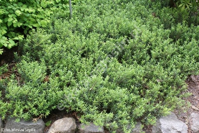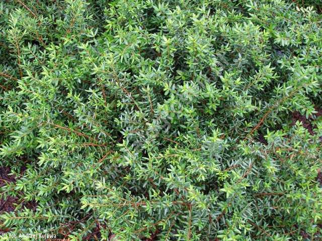 Bardzo rzadko spotykana roślina zimozielona o wydłużonych wąskich liściach. Kwiaty niepozorne. Może być stosowana jako roślina okrywowa. Dobrze i zdrowo rośnie nawet na przeciętnych glebach. Odporna na mróz.