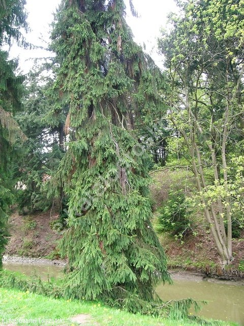 Silnie rosnące drzewo o malowniczym pokroju. Wzrost silny. Dorasta do 12-15 m wysokości i 3 m szerokości. Pokrój regularny, wąskostożkowy lub kolumnowy, z prostym, strzelistym przewodnikiem. Długie, zwisające gałęzie cienkie, wężowate, słabo rozgałęzione. Igły jasnozielone, bardzo krótkie, długości 6-8 mm, ściśle przylegające do pędu. Z wiekiem drzewa stopniowo zagęszczają się i tworzą bardzo ładną, gęstą koronę z gałęziami do samej ziemi. Gałęzie malowniczo obwisają okrywając pień. Drzewo o małych wymaganiach glebowych, ale tak jak wszystkie odmiany świerka pospolitego, źle znoszące suchy miejski klimat. Najlepiej rośnie na glebach gliniasto-piaszczystych, próchnicznych, o umiarkowanej wilgotności, lekko kwaśnych; na stanowiskach nasłonecznionych lub lekko zacienionych. Roślina soliterowa, o wyróżniającym się pokroju. Najładniej wyglądają starsze drzewa posadzone na dużej, otwartej przestrzeni. Do sadzenia w parkach i dużych ogrodach przydomowych.