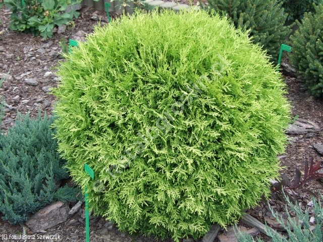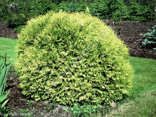 Jedna z ładniejszych odmian żywotnika zachodniego polskiej hodowli, tworząca regularne, kuliste krzewy dorastające do 1,5 m średnicy. Pędy ma gęste, ładnie poukładane, pokryte złocisto-żółtymi łuskami, zimą często przyjmującymi jaśniejszą tonację barwną. Do uprawy wymaga raczej żyznych i wilgotnych gleb oraz słonecznych stanowisk. Jest polecana do sadzenia w ogrodach przydomowych i pojemnikach jako ciekawy element barwny i pokrojowy w różnych kompozycjach ozdobnych.