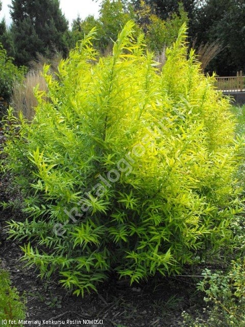 Odmiana o żółtym ulistnieniu odpornym na silne nasłonecznienie. Wysoki i szeroki krzew o luźnym pokroju, dorastający od 3 do 5 m wysokości. Pędy proste, strzeliste. Dolne gałązki ułożone horyzontalnie, pozostałe wzniesione do góry. Kora na młodych pędach jasnozielona, później ciemniejąca. Liście sezonowe, lancetowate, długie, gęsto osadzone na pędach, złocistożółte. Starsze liście, zwłaszcza ukryte wewnątrz krzewu i u jego podstawy cytrynowozielone lub jasnozielone. Liście nie są uszkadzane przy silnym nasłonecznieniu w okresie lata. Odmiana tolerancyjna w stosunku do rodzaju podłoża, zasobności w składniki pokarmowe oraz pH. Najlepiej rośne na glebach wilgotnych, na miejscach słonecznych. Odporna na mróz (strefa 5b), łatwa w uprawie. Polecana do sadzenia w ogrodach przydomowych, parkach oraz na terenach zieleni publicznej, zwłaszcza nad wodą oraz w kompozycjach z silniej rosnącymi krzewami o ciemnym ulistnieniu.