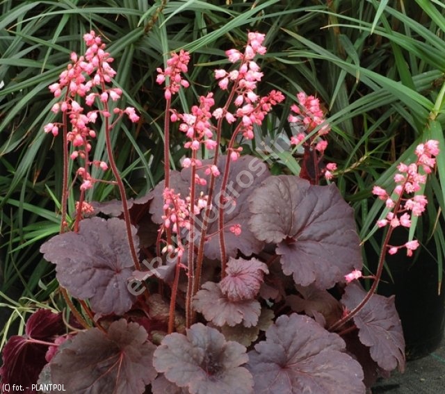 Efektowna, kępiasta bylina o zwartym pokroju i wyjątkowo ciemnej barwie liści. Dorasta do około 20 cm wysokości i 30-40 cm szerokości. Liście odziomkowe półzimozielone. Ciemnopurpurowe, lekko klapowane i miejscami posrebrzane blaszki liściowe są osadzone na długich, czerwonych ogonkach. Brzegi blaszek liściowych są delikatnie i nieregularnie karbowane. Kwiaty różowe, drobne, zebrane w wiechowate i dosyć wąskie kwiatostany wyrastają spośród liści od końca wiosny niemal do jesieni. Różowe kwiaty bardzo ładnie prezentują się na tle purpurowych liści. Łatwa w uprawie, niewymagająca w stosunku do gleby, odporna na mróz bylina polecana do uprawy na delikatnie ocienionych rabatach w ogrodach prywatnych oraz zieleni miejskiej. Na miejscach słonecznych rośnie bardzo dobrze, jeśli gleba jest stale lekko wilgotna. Odmiana wytrzymała na letnie upały. W bezśnieżne zimy rośliny rosnące na stanowiskach słonecznych warto okryć stroiszem. Doskonale nadaje się do tworzenia barwnych kompozycji z innymi odmianami żurawek, do sadzenia w ogrodach skalnych oraz w pojemnikach ustawianych na balkonach i tarasach.