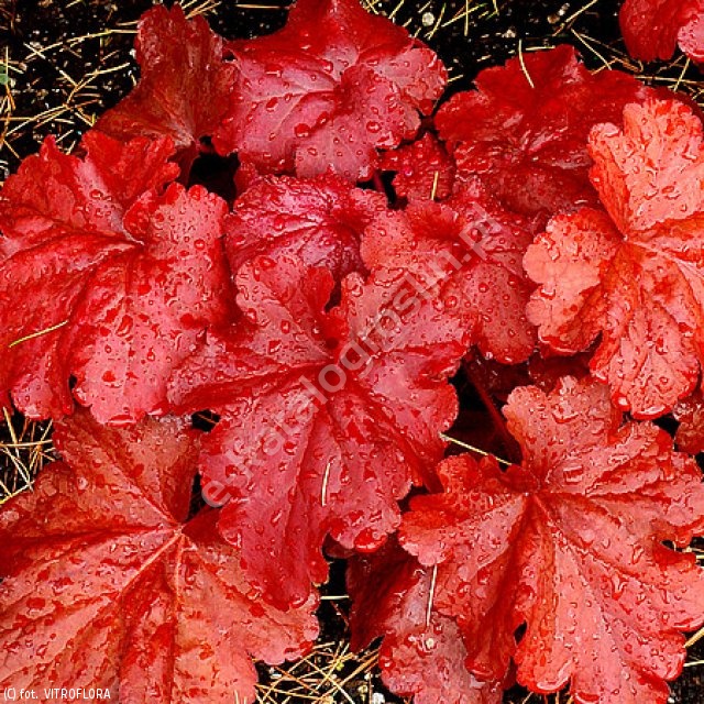 Efektowna odmiana żurawki o płomiennej barwie liści. Nazwa odmiany nawiązuje do intensywnego koloru blaszek liściowych, a rośliny obserwowane z oddali dają złudzenie żarzących się węgli. Kolorystyka liści dodatkowo zmienia się w ciągu sezonu. Pełne wigoru, grube, czerwone liście tworzą kępki osiągające około 20 cm wysokości i 30 cm szerokości. Od innych odmian o podobnej barwie liści odróżnia się szybkim tempem wzrostu i połyskującą wierzchnią stroną liści. Kwiatostany składające się z małych, różowych kwiatuszków ukazują się VI-VIII. Odmiana plastyczna, znosząca różne warunki świetlne, od pełnego nasłonecznienia, przez półcień do cienia. Rośliny sadzone na stanowiskach słonecznych wymagają, aby gleba była stale umiarkowanie wilgotna. W bezśnieżne zimy rośliny rosnące na stanowiskach słonecznych warto okryć stroiszem. Odmiana polecana do uprawy w ogrodach przydomowych, na skalniakach, w pojemnikach, na rabatach jako roślina obwódkowa.
