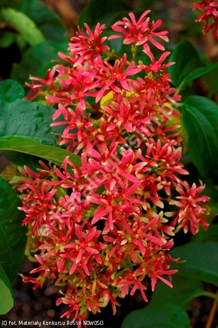 Wysoki krzew o wzniesionych pędach, ładnym ulistnieniu i nietypowej porze kwitnienia. W porównaniu do gatunku charakteryzuje się bardziej zwartym pokrojem. Dorasta do 2,5 m wysokości. Pędy pokrywa ozdobna, jasna kora łuszcząca się długimi pasami. Liście są szerokoeliptyczne, na końcach zaostrzone, ciemnozielone, błyszczące, z 3 wyraźnymi nerwami biegnącymi równolegle przez całą długość blaszek liściowych. Jesienią liście przebarwiają się na żółto. Rośliny kwitną wczesną jesienią. Białe, drobne kwiaty są zebrane w dosyć duże wiechy, rozwijają się od września do pierwszych przymrozków. Wyjątkowo ozdobne są czerwone działki kielicha, dobrze widoczne po kwitnieniu. Roślina preferuje gleby żyzne, umiarkowanie wilgotne, jest tolerancyjna w stosunku do nasłonecznienia i odporna na mróz. Odmiana polecana do sadzenia w ogrodach przydomowych pojedynczo lub w zestawieniach z wysokimi krzewami. Roślina zgłoszona do Konkursu Roślin Nowości wystawy 'Zieleń to Życie' w 2015 r. przez PÉPINIÈRES MINIER.
