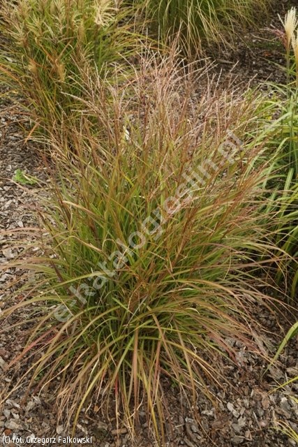 Wieloletnia, kępiasta trawa bylinowa wyróżniająca się intensywnym wybarwieniem liści jesienią. Odmiana ta osiąga w czasie kwitnienia około 130-150 cm wysokości. Wiosną liście mają zielony kolor, ale wraz z nadchodzącą jesienią końcówki stopniowo zaczynają się przebarwiać na purpurowo-czerwone odcienie. Późną jesienią miejsca na blaszkach liściowych, które pozostały zielone (jest to głównie środek kępy), wybarwiają się na pomarańczowo. We wrześniu ponad kępą liści ukazują się srebrnobiałe kwiatostany. Trawa ta do silnego wybarwienia liści wymaga stanowiska słonecznego. Wybarwieniu sprzyja też chłodna jesień. Preferuje gleby przepuszczalne, umiarkowanie wilgotne. Wiosną całą kępę należy ściąć nisko przy ziemi. W ogrodzie stanowi ciekawy akcent kolorystyczny. Miskant ten polecany jest na rabaty bylinowo-trawiaste. Sprawdza się także w niewielkich ogrodach.