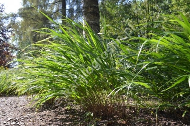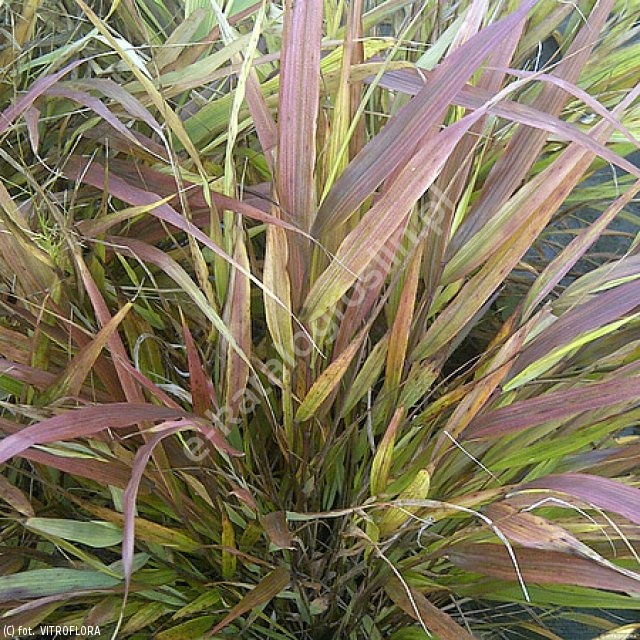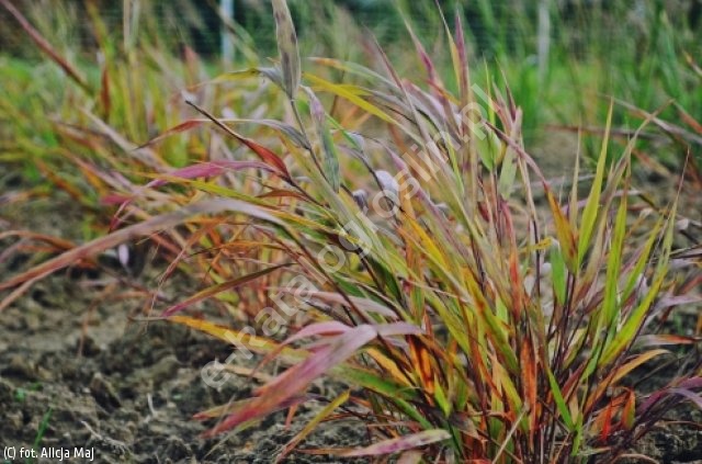 Wieloletnia trawa ozdobna tworząca kępę przewieszających się liści, charakteryzująca się intensywnym jesiennym zabarwieniem. Zarówno pędy jak i liście mają pokładającą się, kaskadową formę. Odmiana ta dorasta do wysokości około 50 cm oraz nawet 80 cm szerokości. Jesienią ukazują się subtelne kwiatostany w postaci zwisających wiech. Trawa o orientalnym pokroju. Liście początkowo zielone, malowniczo falują na wietrze. Późną jesienią podziwiać można czerwono-pomarańczowe zabarwienie liści. Dobrze rośnie na glebach przeciętnych, żyznych, umiarkowanie wilgotnych. Sprawdza się na stanowiskach półcienistych, jednak aby jesienne zabarwienie liści było mocniejsze, należy jej zapewnić słoneczne stanowisko i stale wilgotną glebę. Trawa łatwa w uprawie, mrozoodporna. Polecana do obsadzania brzegów rabat, stosowania w ogrodach orientalnych oraz jako roślina okrywowa.